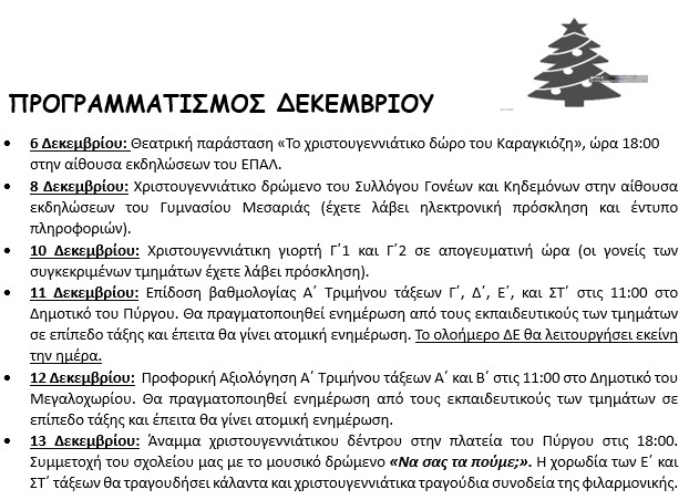 ΔΡΑΣΕΙΣ ΝΟΕΜΒΡΙΟΥ-ΔΕΚΕΜΒΡΙΟΥ