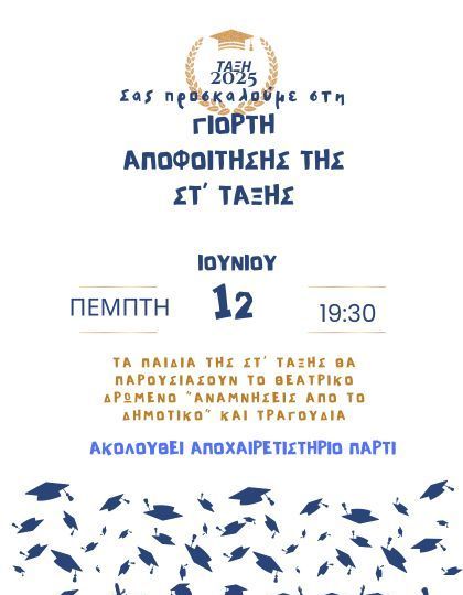 Ο Αγιασμός για τις τάξεις Γ', Δ', Ε' και ΣΤ' θα πραγματοποιηθεί την Τετάρτη 11 Σεπτεμβρίου 2024 και ώρα 09:30