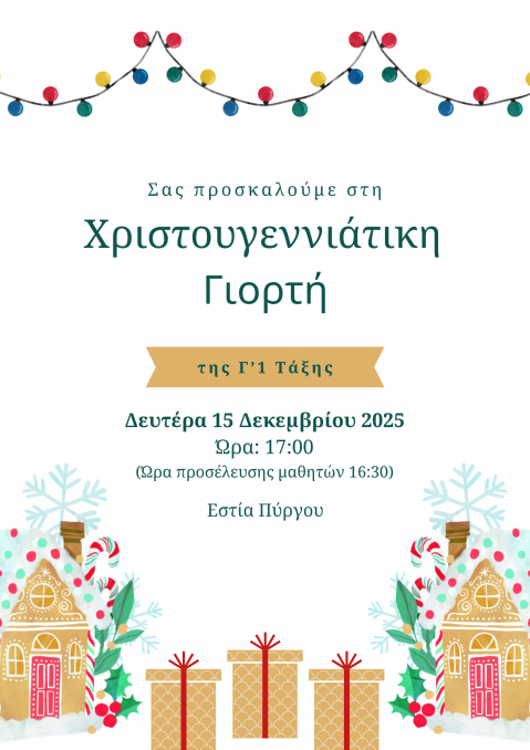 27 Νοεμβρίου: παρακολούθηση χριστουγεννιάτικης ταινίας στην Εστία Α΄- Β΄ τάξεις εντός διδακτικού ωραρίου (συνεργασία με τον Σύλλογο Γονέων).