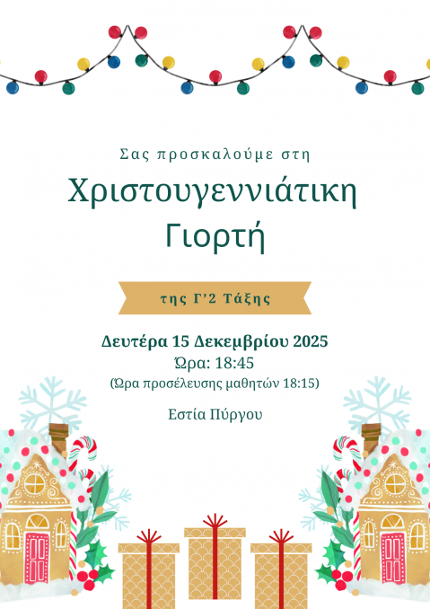 28 Νοεμβρίου: παρακολούθηση χριστουγεννιάτικης ταινίας στην Εστία Γ΄ έως ΣΤ’ τάξεις εντός διδακτικού ωραρίου (συνεργασία με τον Σύλλογο Γονέων).